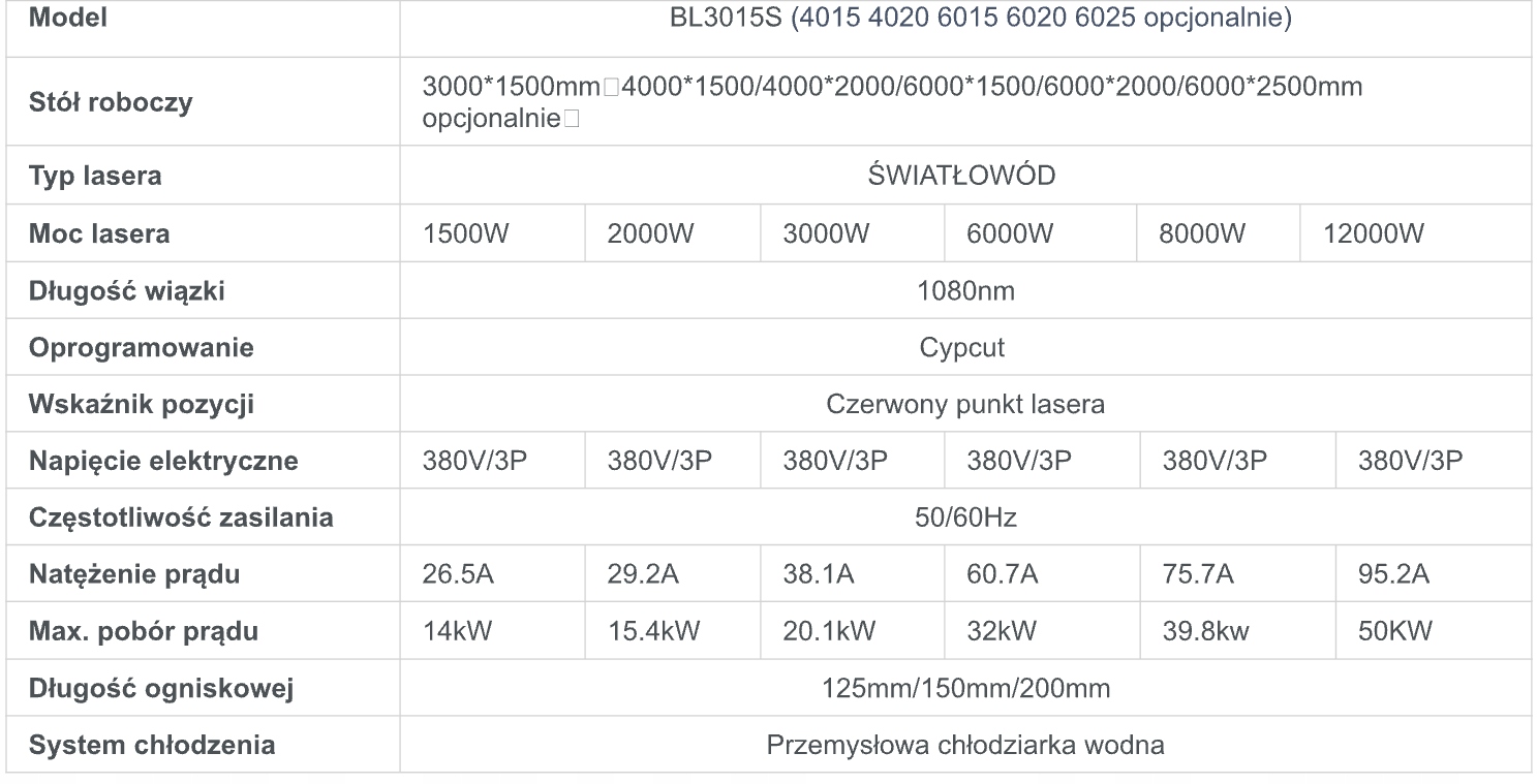 Wycinarki laserowe światłowodowe BL3015S to najlepsze urządzenia do precyzyjnego cięcia materiałów metalowych o dużej mocy. Dzięki źródłom lasera światłowodowego o dużej mocy, począwszy od 3 kW, oferujemy rozwiązania o mocy do 12 kW. Źródła o dużej mocy mogą być wykorzystywane do cięcia stali miękkiej i nierdzewnej o grubości do 30 mm oraz aluminium o grubości do 25 mm.